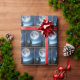 A German Shepherd dog looks up at a full moon where Santa's sleigh and reindeer are silhouetted against a bright full moon