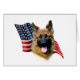 USA! America! Shout your pride with this awesome flag Patriotic background with this AKC dog breed German Shepherd in the forefront. Show your pride with this design on a t-shirt, mug, and much, much more!