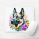 German Shepherd in Pink and Yellow Flowers Mouse Mat