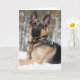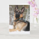 German Shepherd dog posing in the snow wearing a camoflaug colored bandana.