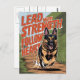 A German Shepherd dog runs through a forest path with a determined look on its face. A motivational message appears above it, reading Lead With Strength, Follow Heart.
