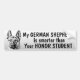 My German Shepherd dog is smarter than your honour student - funny bumper stickers. It's time for German Shepherd owners to get in on this whole bragging about an honour student. German Shepherds are smart dogs. Every German Shepherd owner knows that their dog is one of the smartest dog breeds, right? Well now it's your turn, as a proud German Shepherd dog owner to brag about how intelligent these fiercely loyal dogs can be! If you, or someone you know owns a German Shepherd, than this funny German Shepherd bumper sticker would be a great gift!