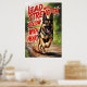 A German Shepherd dog runs down a dirt path with a determined expression. The dog is depicted in a stylised, almost cartoonish manner, with bold, graphic lines. The image is accompanied by the text Lead with Strength, Follow with Heart.