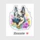 Pretty ai art watercolor style German Shepherd surrounded by yellow and pink flowers.