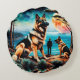 German Shepherd resting after hike to top of mountain overlooking the ocean
