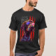 I give wanted to give this a 4 instead of a 5 because these Basic DARK T0shirts run unexpectedly SLIM or Narrow. Which is great if you do not have a potbelly, but I have a paunch. It isn't the shirt's fault that I've got a beer belly. The design and shirt itself is a quality cotton shirt. The color is more of a deep purple, but still a very pretty color. The Basic DARK T-shirts run a bit SLIMMER than the Basic Ts. The neck is a fraction narrower (or seems to be narrower) also. I'm a paunchy middle-aged woman and my neck is 12 inches (31cm) thick and the neckline fell about the same as in the photo of the man, and I had the desire to tug it a bit. So if you're a thick necked man or like loose shirts, be aware these are slimmer shirts. Once I get rid of my lockdown paunch it'll look great. The shirt washed well in cold water with no apparent bleeding. We don't have a dryer, so it hung dry. Did not shrink. Love the colors and the design. The design looks smaller on my shirt than it does on the model on-line. But still, it looks good on the shirt. The printing looks as it does on the model, just the size seems fractionally smaller. Washed garment in cold water, hung dry and design appeared unaffected.