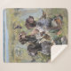 The fabric is really soft, and thick, I’m sitting here with it wrapped around me and it’s so warm! It’s really smooth and sleek on the printed side and fluffy on the back. I love it! Such good quality, so vibrant and clear, not blurry at all! See the photos I’ve attached, there’s no filters or anything on them!