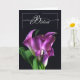 A German language sympathy greeting with plum colored lilies. "My sincere condolences" with a verse which translates to: "Our thoughts are with you during this painful time." Funeral or memorial condolences.