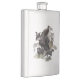 The product is a good size and came exactly as it was pictured.  The lid is not attached to the flask, which could be dangerous on drunken nights... The print came out surprisingly well and looks very sharp.  Would definitely recommend.