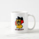 A country of north-central Europe. In this design, the German Coat of Arms, an official emblem is superimposed on the flag filled map of the country.
