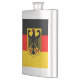The product is a good size and came exactly as it was pictured. The lid is not attached to the flask, which could be dangerous on drunken nights... The print came out surprisingly well and looks very sharp. Would definitely recommend.