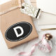 This item has the popular international oval design and abbreviation for Germany; the single letter D.