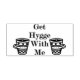 Get Hygge With Me Text with a cup of cocoa on each side. Hygge is a Danish word for a comfortable state.