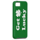 Case with "Get Lucky" written on it and a shamrock on it.