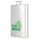 Modern design with typographic letters: "Get Lucky" (green and transparency digital effect) + a big half-transparent clover with small shamrocks inside and white background. Perfect flask for St Patrick. Matching products.