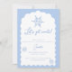 Celebrate the bride-to-be with our charming nautical-themed bachelorette party invitation! Set sail on a weekend full of fun with our "Let's Get Nauti" design featuring light blue hues, a wavy arch, and a classic helm wheel. This seaworthy invite sets the tone for a maritime adventure with a detailed weekend itinerary to keep the festivities on course. Get ready to anchor down and enjoy a coastal getaway filled with laughter, memories, and nautical vibes. Cast off with our trendy invitation and make waves at the ultimate bachelorette bash!