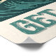 This retro-inspired surf art features a too-cool bulldog who rides an endless wave in front of the setting golden sun. "Get On Board" is written in teal vintage coastal font. Designed with old-school California energy, the distressed look gives it an authentic feel, like a poster pulled straight from a 1950s surf shop wall. This nostalgic poster art is made for beach houses, surf shacks, studios, and anyone who lives for cuddles from their dog.