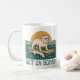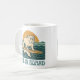 This retro-inspired surf art features a too-cool bulldog who rides an endless wave in front of the setting golden sun. "Get On Board" is written in teal vintage coastal font. Designed with old-school California energy, the distressed look gives it an authentic feel, like it was pulled straight from a vintage surf shop. This fun coffee mug is perfect for beach lovers and dog lovers alike.