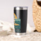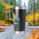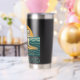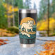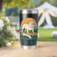 This retro-inspired surf art features a too-cool bulldog who rides an endless wave in front of the setting golden sun. "Get On Board" is written in teal vintage coastal font. Designed with old-school California energy, the distressed look gives it an authentic feel, like it was pulled straight from a vintage surf shop. This insulated tumbler is perfect for beach days, surf sessions and as an everyday statement accessory. Stay salty, and hydrated.