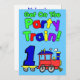 Get On The Party Train 1 Year Old birthday party. It features a colourful, cartoon train carrying the number one. Great for a boy or girl's first birthday! Get everyone in the party mood with this colourful, train themed birthday invite.