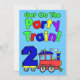Get On The Party Train 2 Year Old birthday party. It features a colourful, cartoon train carrying the number two. Great for a boy or girl's second birthday! Get everyone in the party mood with this colourful, train themed birthday invite.