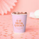GET READY TO EAT DRINK AND DANCE! Modern pink, orange, bold font, wedding custom paper cups with your names and date.