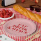 Available in pink with bold lettering in orange, these modern wedding napkins are the perfect blend of function and statement design.