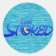 Stoked is a surfer term meaning to be happy or excited. Get Stoked wording with a surfer riding a wave inside the O.