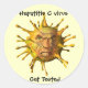 Hepatitis C Virus with a scowling face. Hepatitis C virus can lie dormant in the body for many years. If not treated, it can cause cirrhosis or cancer of the liver.