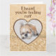 Get well soon cute puppy dog shihtzu sleeping custom card for your loved one who got ill. Personalise front text I heard you're feeling ruff and inside: I hope you get well soon. Golden champagne Sparkles are just a print.