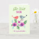 Get Well Soon, card for a sister. Personalise the cover of this Get Well Soon, paper greeting card as you like. Illustration of flowers with two birds on branches. Art, image, and verse copyright © Shoaff Ballanger Studios, 2022.