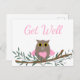 Get Well pink owl postcard.