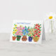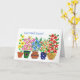 A Get Well Soon card with a row of flowerpots of colourful flowers, from a handpainted paper collage by Judy Adamson. The inside is left blank for your own message and please contact me through my store if you'd like a different front cover greeting.