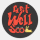 A vibrant and playful sticker designed to brighten up someone's day when they're feeling under the weather. The sticker features the words "Get Well Soon" in bold, orange letters on a black circular background, accompanied by a cute yellow cartoon bunny and a red octopus with large eyes. The design is sure to bring a smile to the recipient's face and provide a thoughtful gesture of support during their recovery.