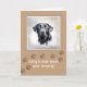 Comfort a black lab and owner after surgery with our get well card for a dog. A sad black lab head is on a mat, with a soft watercolor wash. Light paw prints walk across the card below. Inside, a simple message reads: "Your tail will wag again soon!" Perfect for wishing a speedy recovery for a beloved pet.