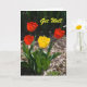 Cheerful spring tulips decorate this get well greeting. The card is fully customisable for many occasions.