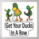 Get Your Ducks In a Row design features hand drawn ducks standing in line with a speech caption below - a humorous duck expression for those who need to get organised.