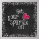 Get your sparkle on Quote Posters and Prints. Black chalkboard background with white text and red faux glitter heart. Bokeh light edge highlights surround the sparkle quote. Inspirational and motivational message.