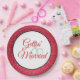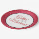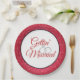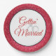 Party paper plate shown in a lovely Red faux glitter print around the rim and White centre. Gettin' Married in a fancy script in centre with two interlinked rings.