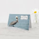Florida pelican on a wooden dock for a humourous getting older birthday.