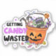 A fun and festive sticker featuring a jack-o'-lantern basket overflowing with colourful candy. The phrase "Getting Candy Wasted" captures the playful chaos of Halloween night. Ideal for Halloween parties, trick-or-treaters, and candy lovers of all ages.