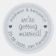 Chic and simple save the date label, with your names and wedding date in off-black modern typography on a pastel blue background, and the text 'we're getting married' in stylish script font. Use these wedding stickers for your wedding gifts, gift bags or as a save the date envelope seal. Exclusively designed for you by Happy Dolphin Studio. If you need any help or matching products, please contact us at happydolphinstudio@outlook.com.