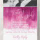 Script text we're getting married wedding with a tear-off RSVP red, pink loosely painted wash on white. Typographic script text abstract art wedding invitation reads We're getting married. Simple modern contemporary design, personalise with your own brides' and groom's names, venue, details and reply details, and your favourite wedding photo from your wedding day on the reverse. This design requires no extra envelopes and has a detachable perforated RSVP for easy replies. Matching wedding products and other colour options available in the store. © Wash watercolor painting and design by Sarah Trett for www.mylittleedenweddings.com