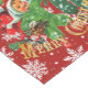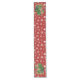 Christmas red table runner with happy, cheerful children getting the Christmas tree back to home after cutting it in the forest - perfect for holiday entertaining.