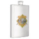 The product is a good size and came exactly as it was pictured. The lid is not attached to the flask, which could be dangerous on drunken nights... The print came out surprisingly well and looks very sharp. Would definitely recommend.