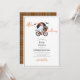 Groovy, spooky and cute this Halloween baby shower invitation features an adorable ghost riding a bike with flowers in the basket surrounded by stars and bats. Fun typography says A Little Boo Is On The Way making this a unique baby shower invitation. The plaid background adds to the fun vibe. It is perfect for halloween baby showers. See coordinating items in our shop, Enchanted Finch.
