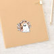 Ghost and coffee sticker. Fall season aesthetic room decor for baristas and coffee lovers. Beige, brown and pink illustration with a cute ghost holding a cup of coffee. Cosy autumn aesthetic stickers.