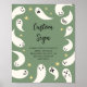 Cute halloween theme baby shower custom sign. Illustration of cute ghosts with stars. The background is green.