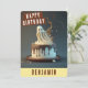 A birthday card featuring a ghost themed birthday cake on the front with "Happy Birthday", all-caps bold font. Personalise the front by adding your name(s). The inside of the card features space for your typed or handwritten message.