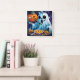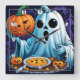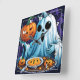 Ghost celebrating Halloween with pumpkins Square Wall Clock